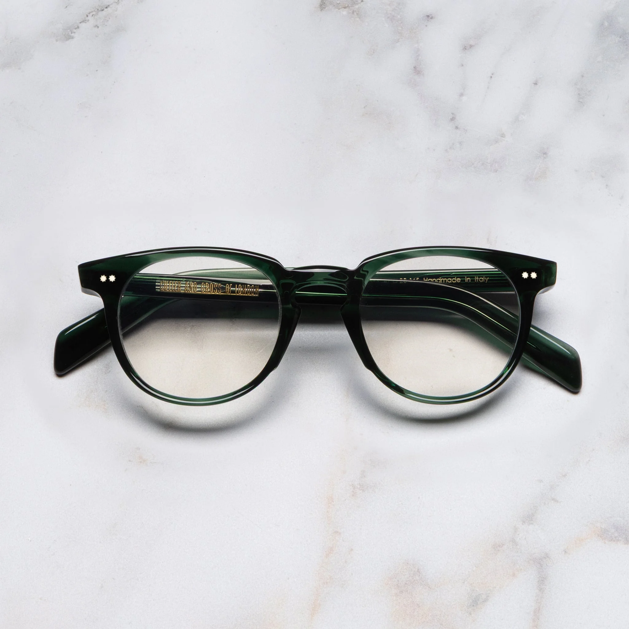 Handcrafted to a slim profile with interior and exterior milling, the GR09 is a lightweight frame with distinguished impact. It is shaped with extended lugs and detailed with polished Compass Star pins. Designed for slighter face shapes, the Graham Cutler collection scales our bold aesthetic into lighter proportions. Details - Keyhole bridge - Compass Star frontal and temple pins - 5-barrel hinges - Fender temples - Deco core wire - Logo engraved on inner temple - Handcrafted in Italy by expert craftspeople, read more about our craftsmanship story Size & Fit SKU: CGOP-GR09-47-03 Frame shape: Round Lens width (mm): 47 Temple length (mm): 145 Bridge width (mm): 18