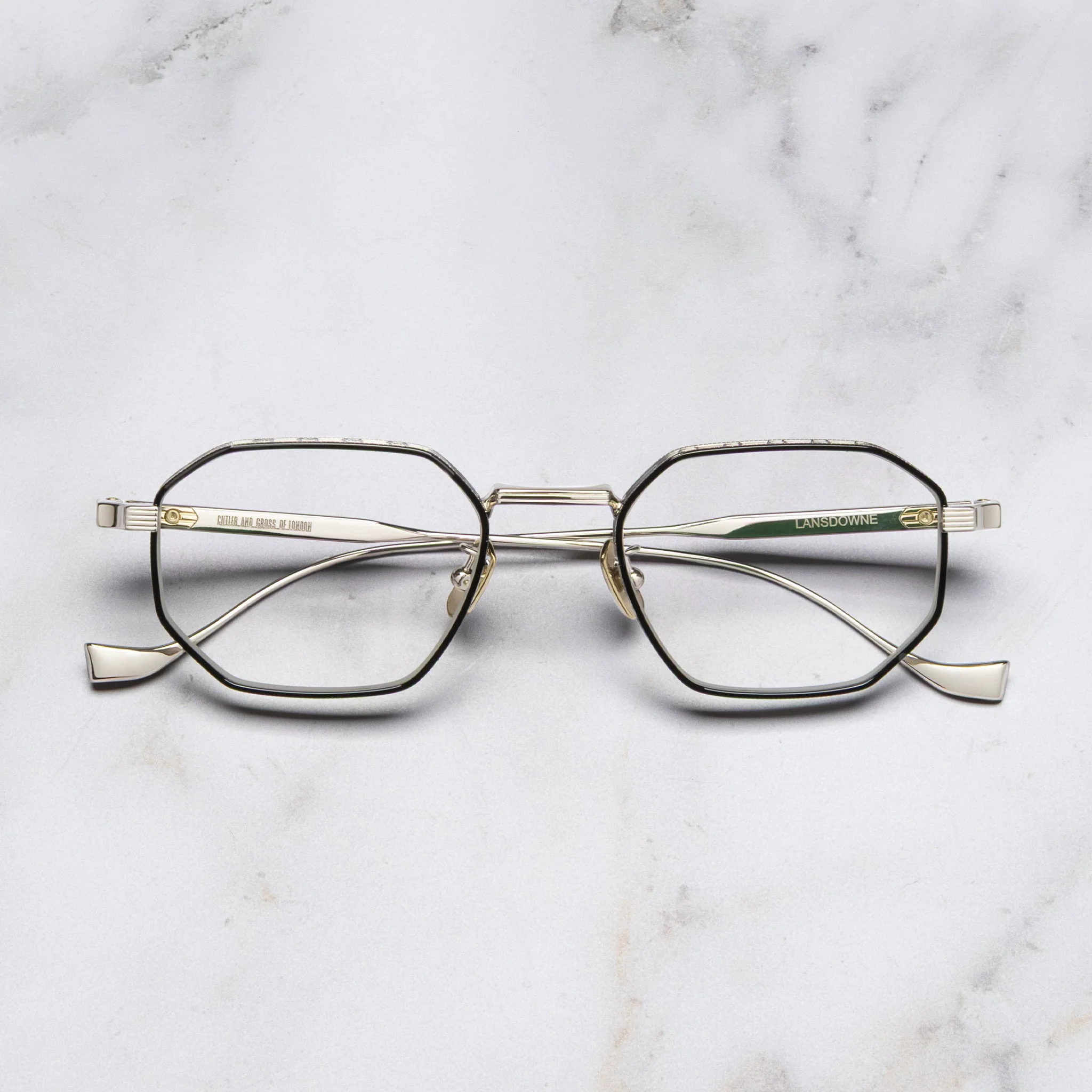 The Lansdowne 1431 explores a geometric square silhouette with an artist’s eye and an engineer’s hand. Handcrafted in Japan from pure titanium, the optical is accented with striking design cues that reference the sinuous and three-dimensional nature of British supercars from the 60s and 70s. From the Oyster pin nose bridge to the quiet yet considered temple tips, each element garners inspiration from the front grills and fenders of these iconic automotives. The Knightsbridge Green collection is presented in highly limited quantities, with each frame uniquely finished with its bespoke edition number. Details - Titanium frames - Linear Oyster pin nose bridge - Hand-rolled Deco Oyster pin rim wire - Hand-applied lacquer rims (Silver only) - Hypoallergenic Oyster pin nose pads - Developed inner hinges - Precision Torx screws - Extended Oyster pin temples - Indelible laser-etched logo on inner temple - Oyster pin temple tips - Handcrafted in Japan - SKU: CGOT-1431-50 Size & Fit Size: Narrow Frame width: 140 mm Temple length: 145 mm Lens width: 50 mm Bridge width: 20 mm Bridge fit: Medium Size Guide. Find your size and fit. Face shape: Square, oval, round, heart Discover the Face Shape Guide.