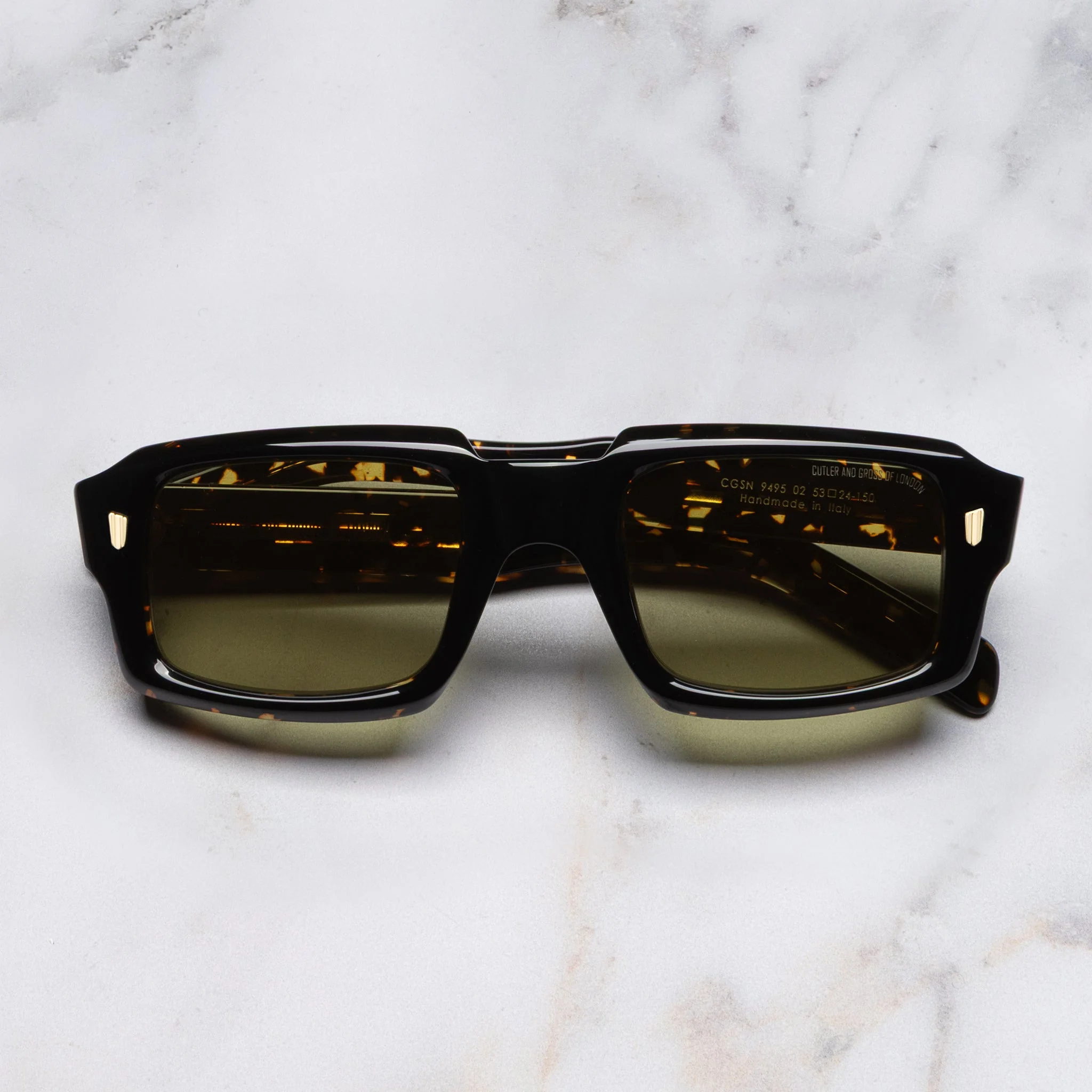 Shaped to a curved 6-base silhouette, this sunglass required our artisans to unearth specialist techniques from the 60s. The determined, blocky profile has been cut away at the browbar and chamfered with tilted edges. Detailed inside and out, the frame has been intricately milled around the lenses. Details - 6-base frame - 100% UVA and UVB lenses - Oyster frontal pins - Compass Star temple pins - 7-barrel hinges - Modernist core wire - Desert temple tips - Gold-foil logo inside temple - Handcrafted in Italy by expert craftspeople, read more about our craftsmanship story Size & Fit SKU: CGSN-9495-53-02 Frame shape: Rectangle Temple length (mm): 145 Lens width (mm): 53 Bridge width (mm): 24