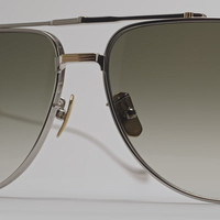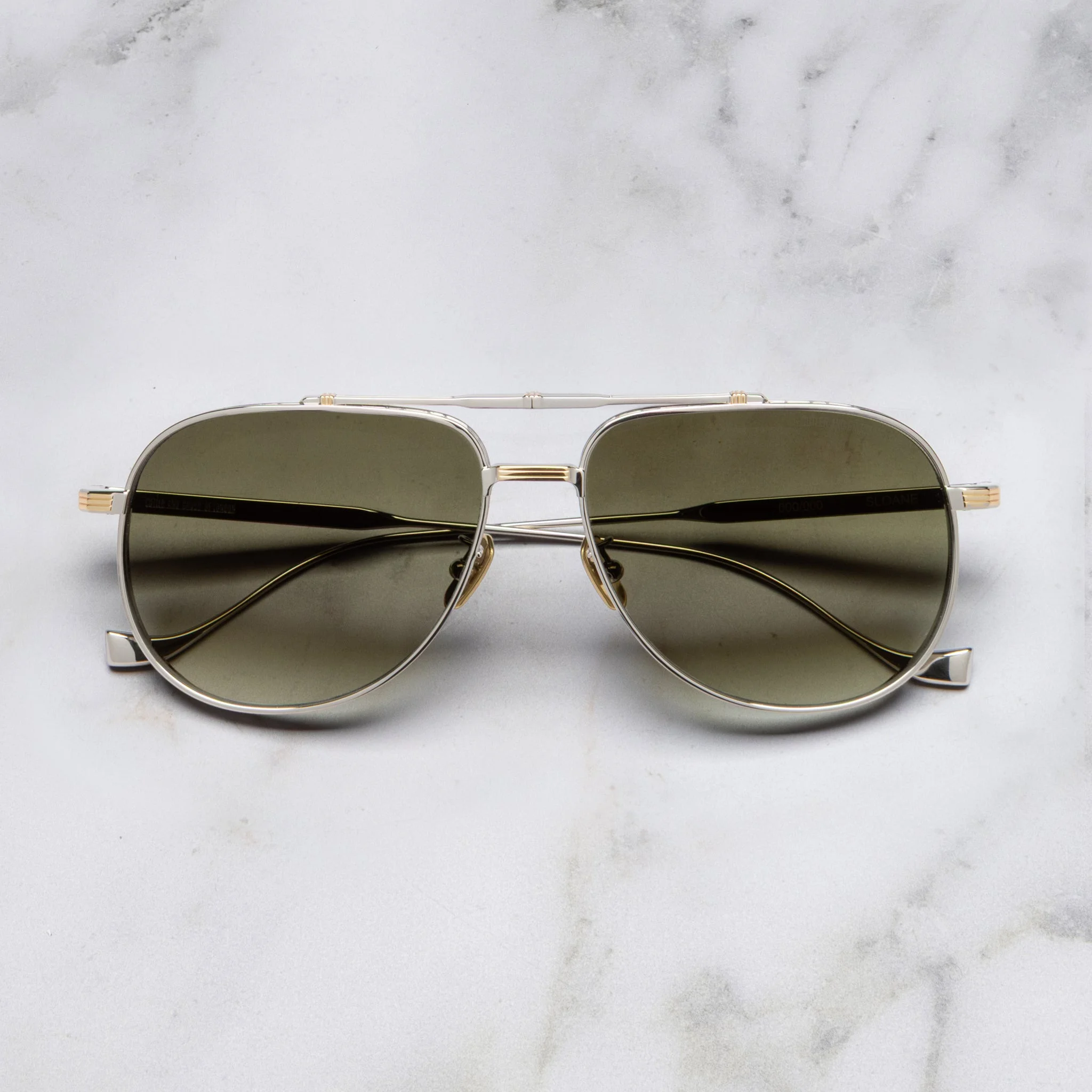 Worked with the same precision of a fine jeweller, the Sloane 1423 is exemplified by its material beauty. Handcrafted in Sabae, Japan, the aviator sunglass is reimaged through the architectural lens of titanium. Along the brow bar, nose bridge and temples lie an evolved Oyster pin, inspired by dynamic British supercars of the 60s and 70s and meticulously placed to give depth to the refined style. Featuring ZEISS sun lenses for optimal performance and maximum UV protection. Each frame in the Knightsbridge Green collection is presented in highly limited quantities of 350, and uniquely finished with its bespoke edition number. Details - 100% UVA and UVB lenses - ZEISS sun lenses - Polarised lenses (Black only) - Titanium frames - Linear Oyster pin brow bar and nose bridge - Hand-rolled Deco Oyster pin rim wire - Hypoallergenic Oyster Pin nose pads - Precision Torx screws - Extended Oyster pin temples - Indelible laser-etched logo on inner temple - Oyster pin temple tips - Handcrafted in Japan - SKU: CGST-1423-60 Size & Fit Size: Wide Frame width: 150 mm Temple length: 150 mm Lens width: 60 mm Bridge width: 15 mm Bridge fit: Wide Size Guide. Find your size and fit. Face shape: Round, oval, square, heart. Discover the Face Shape Guide.