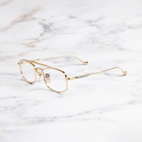 Handcrafted in Japan from pure titanium, this optical ushers in a new era for Cutler and Gross X The Great Frog. The lightweight yet incredibly strong material has the capacity for unprecedented detail, which is apparent with this frame. An angular take on a navigator shape, it is augmented with an intricate stripe detail on the nose bridge and The Great Frog's Bones Link emblem on the temples. A limited production of 250 frames. Details - Titanium - The Great Frog Collection - Engraved double nose bridge - Adjustable nose pads - Bones Link trim at temples - Logo engraved on inner temples - Handmade in Japan Size & Fit SKU: GFOP-016-51-01 Frame shape: Rectangle Frontal width (mm): 140 Lens width (mm): 51 Temple length (mm): 150 Bridge width (mm): 20