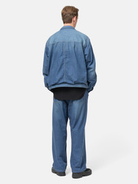 This innovative denim jacket uses a patented process that allows indigo dyeing on nylon, creating a fabric that’s lightweight, quick-drying, and more durable than traditional denim. Its design draws from 1940s workwear, offering a familiar look with modern performance built in. A subtle used finish adds character, while a breathable mesh lining improves comfort during outdoor or active use. The result is a versatile everyday layer that blends vintage style with technical functionality. DETAILS - 88-16-0038-704 - 100% Nylon - Indigo dye - Wash and distress treatment - Mesh lining - Relaxed fit - Button closure - Pleated front - Articulated sleeves - Button flap closure patch chest pocket - Made in China