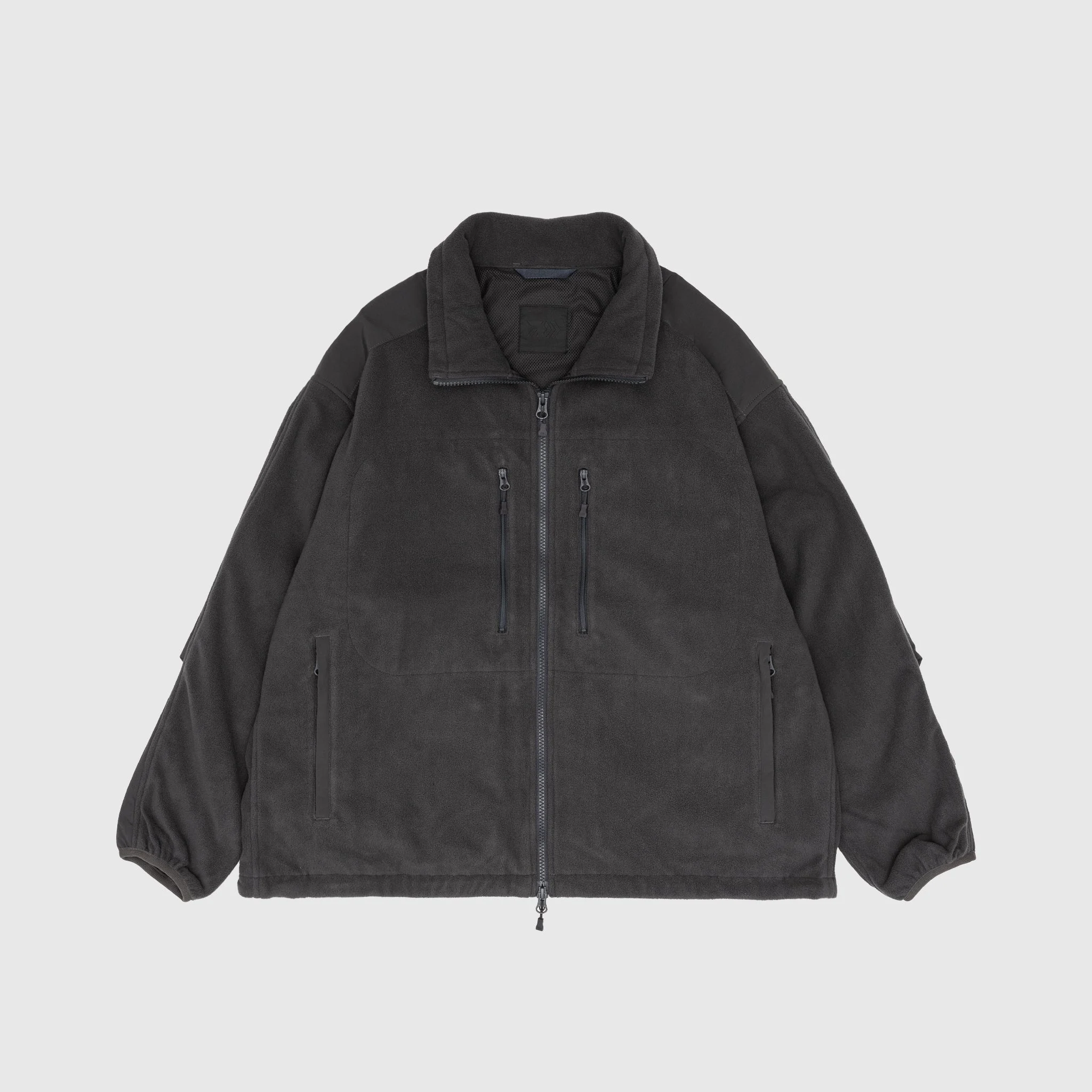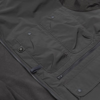 - 88-18-0089-704-17 - Charcoal - 100% Polyester - Lining: 100% Polyester - Microfleece - Front two-way zipper closure - Two front chest pockets with zipper closure - Two front side pockets with zipper closure - Multiple interior pockets - Elastic trim cuffs - Adjustable drawcord hem - Action pleats at the arm - Stand up collar