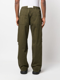 adjustable waist-strap trousers Highlights - Olive green - Stretch-cotton - Straight leg - Adjustable waist strap - Mid-rise - Two side inset pockets - Two rear patch pockets Made in Italy Composition Cotton 97%, Elastane 3% SIZE & FIT Model measurements Height 6 ft 1 in(1.85 m) Bust/Chest 38.58 in(98 cm) Hips 37 in(94 cm) Waist 30.31 in(77 cm) FittingInformation Designed for a straight-leg, allowing for an unrestricted and comfortable fit over the leg The belt offers adjustability for fitted preferences Made from a midweight stretch fabric, this piece offers elasticity and flexibility when worn This piece fits true to size – take your usual size