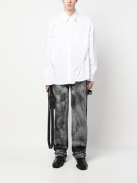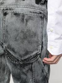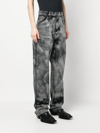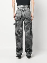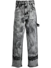 bleached-effect high-waisted jeans bleached-effect high-waisted jeans from DARKPARK featuring smoky black, cotton, denim, bleached effect, high waist, concealed fly and button fastening, belt loops, classic five pockets, strap detailing, paint splatter detail, straight leg and frayed edge. Made in Italy Composition Cotton 100% SIZE & FIT Model measurements Height 6 ft 2 in(1.87 m) Bust/Chest 35.82 in(91 cm) Hips 35.43 in(90 cm) Waist 27.95 in(71 cm) FittingInformation This piece fits true to size. We recommend you get your regular size Designed for a slim fit at the waist and loose over the leg Made with a mid-weight non-stretch fabric