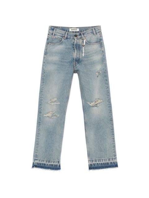 chain-embellished jeans Highlights - Blue - Frayed hems - Chain detail - Five-pocket styling - Button fly - Belt loops Made in Italy Composition Lining: Polyester 65%, Cotton 35% Cotton 100% SIZE & FIT Model measurements Height 6 ft 1 in(1.85 m) Bust/Chest 35.82 in(91 cm) Hips 37.79 in(96 cm) Waist 29.13 in(74 cm) Washing instructions Machine Wash