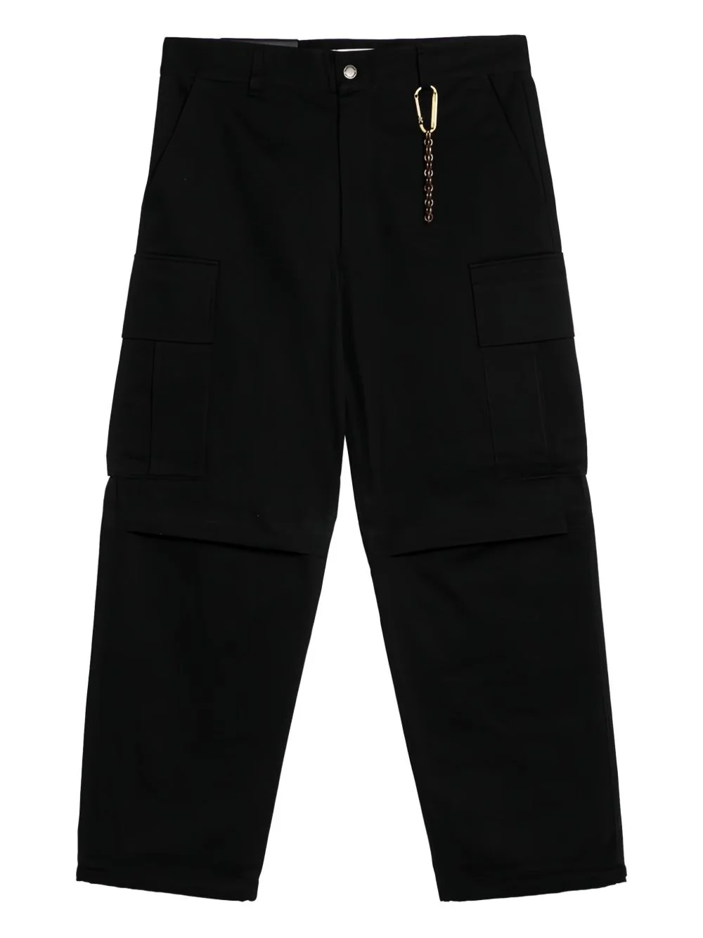 Saint trousers Highlights - Black - Cotton - Twill weave - Concealed fly and button fastening - Mid-rise - Belt loops - Keyring attachment - Two side slash pockets - Two side cargo pockets - Pleat detailing - Dart detailing - Logo patch to the rear - Two press-stud fastening rear pockets - Strap detailing - Drawstring hem - Straight leg Made in Italy Composition Outer: Cotton 100% Lining: Polyester 65%, Cotton 35% SIZE & FIT FittingInformation Designed for a relaxed straight leg, allowing a comfortable and loose fit over the leg Made from a midweight non-stretch fabric