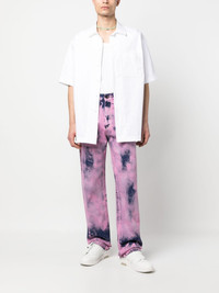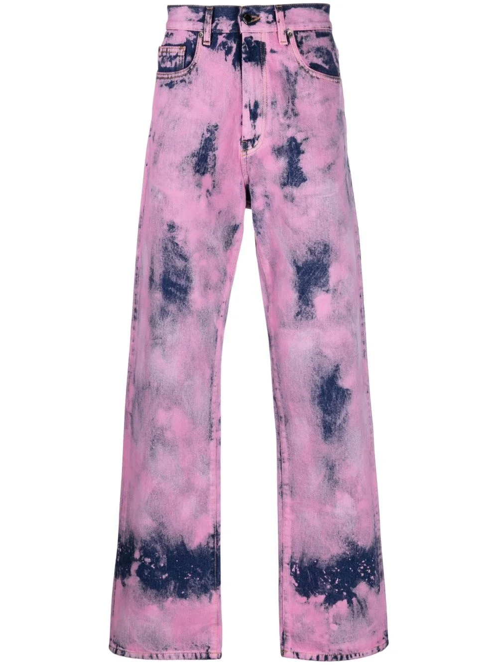 tie-dye straight-leg jeans navy blue flamingo pink cotton tie-dye pattern belt loops straight leg concealed fly and button fastening classic five pockets Made in Italy Composition Cotton 100% SIZE & FIT Model measurements Height 6 ft 1 in(1.85 m) Bust/Chest 35.82 in(91 cm) Hips 37.79 in(96 cm) Waist 29.13 in(74 cm) FittingInformation This piece is unisex and is designed with a straight-cut over the leg whether you usually select women's or men's sizes Sturdy and hard-wearing, this denim piece offers no stretch