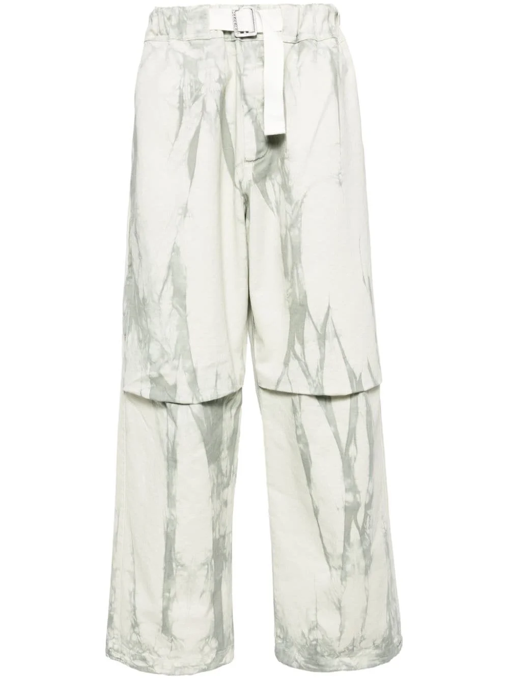 tie-dye straight-leg trousers Highlights - Light grey/off-white - Cotton - Tie-dye print - Mid-rise - Adjustable waist strap - Two side inset pockets - Two rear patch pockets - Straight leg Made in Italy Composition Cotton 100% SIZE & FIT Model measurements Height 6 ft 2 in(1.89 m) Bust/Chest 37.4 in(95 cm) Hips 36.61 in(93 cm) Waist 28.34 in(72 cm) FittingInformation Designed with a wide leg, offering a loose and roomy fit The internal drawstring at the hem allows for fitted preferences at the ankle Made from a midweight non-stretch fabric This piece fits true to size – take your usual size