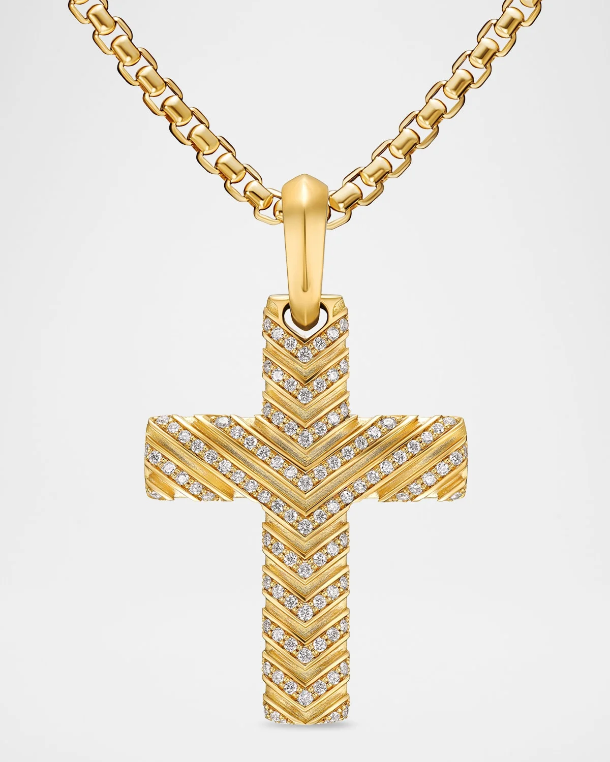 Men's Chevron Cross Enhancer in 18K Gold with Diamonds, 36mm