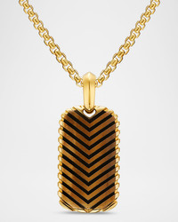 Men's Chevron Tag Enhancer in 18K Gold with Tigers Eye, 27mm