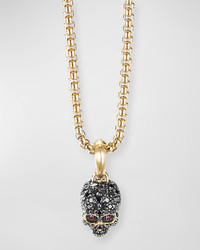 - David Yurman skull amulet enhancer. - Pave black diamonds and rubies. - 1.13 total diamond carat weight. - 18-karat yellow gold. - Imported. - Please note: - amulet only; chain sold separately. - Shop David Yurman Men's Necklaces & Chains - Care Instructions: - Use the provided polishing cloth to gently wipe this item clean, then remove any remaining tarnish with mild diluted soap. Rinse with warm water, dry with a clean towel and store it in its jewelry pouch. - Please note: - Styles featuring meteorite should not be exposed to water.