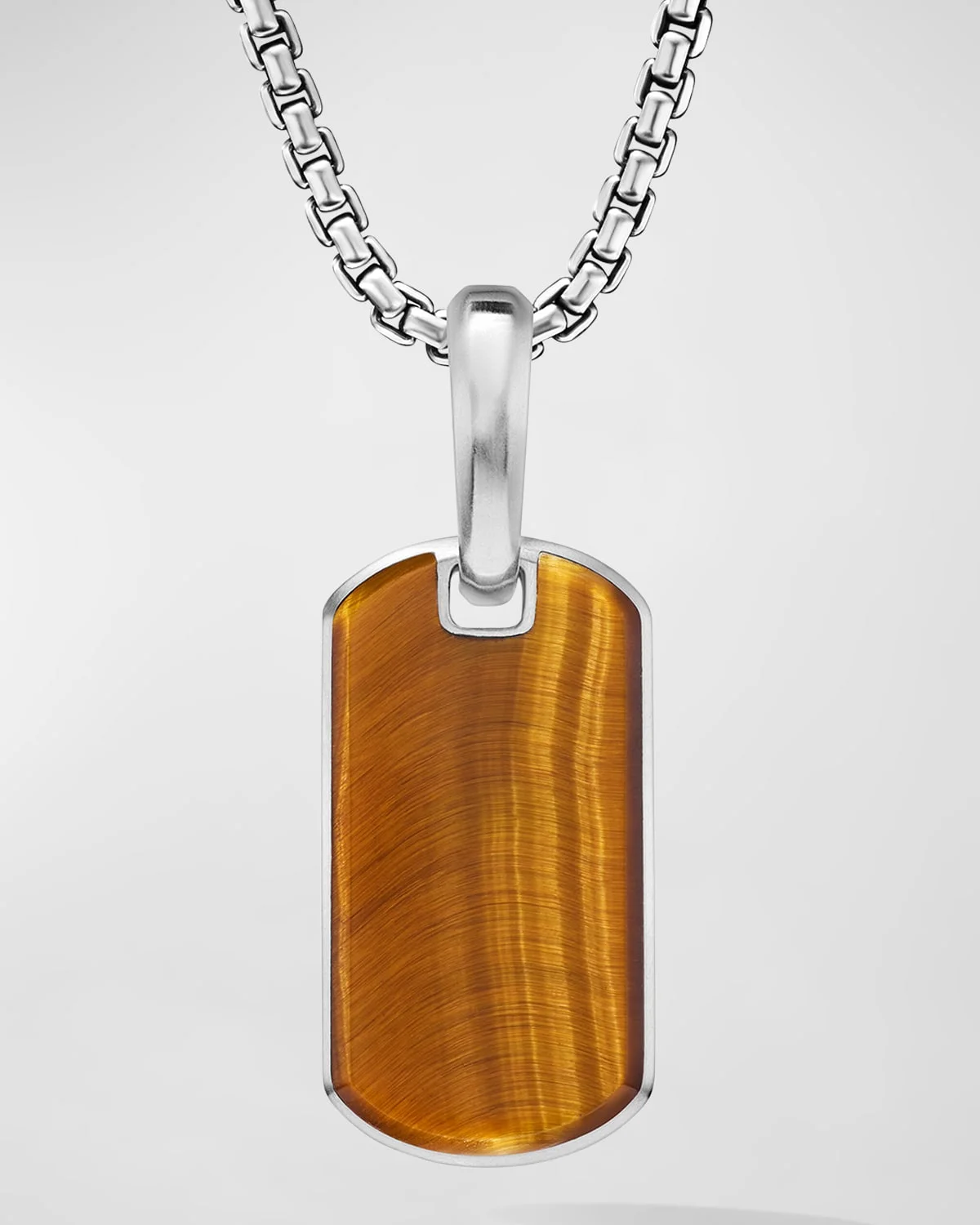 - Sterling silver - Tiger's eye - Tag, 21 x 11.1mm - Please note: tag only; chain sold separately - Imported - Care Instructions: - Use the provided polishing cloth to gently wipe this item clean, then remove any remaining tarnish with mild diluted soap. Rinse with warm water, dry with a clean towel and store it in its jewelry pouch. - Please note: - Styles featuring meteorite should not be exposed to water.