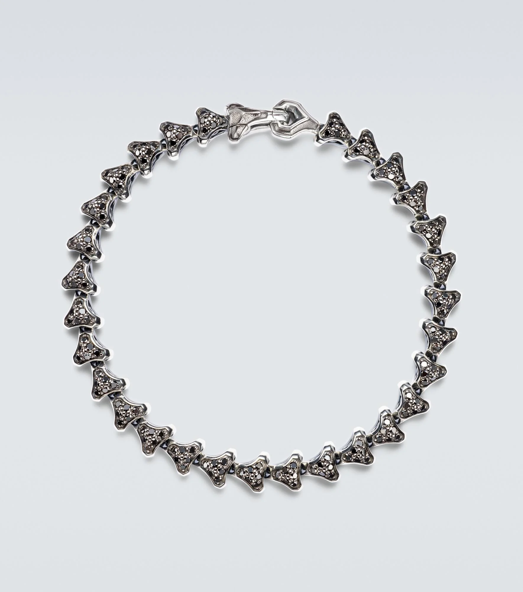 Delve into the visionary world of David Yurman, a fine jewelry master beloved for its innovative and impeccable craftsmanship. Hand-finished with black diamonds, the Armory® bracelet is made from 925 sterling silver and takes inspiration from the armor worn during the medieval period. Product Details - Material: 925 sterling silver - Made in Taiwan - Item color: silver - Stone I: black diamonds, 3.132ctw, pave setting - Closure: clasp fastening - Item number: P01071455 Size & Fit - Length when open size M 20,5cm-8" - Max. width 7mm-0.3"