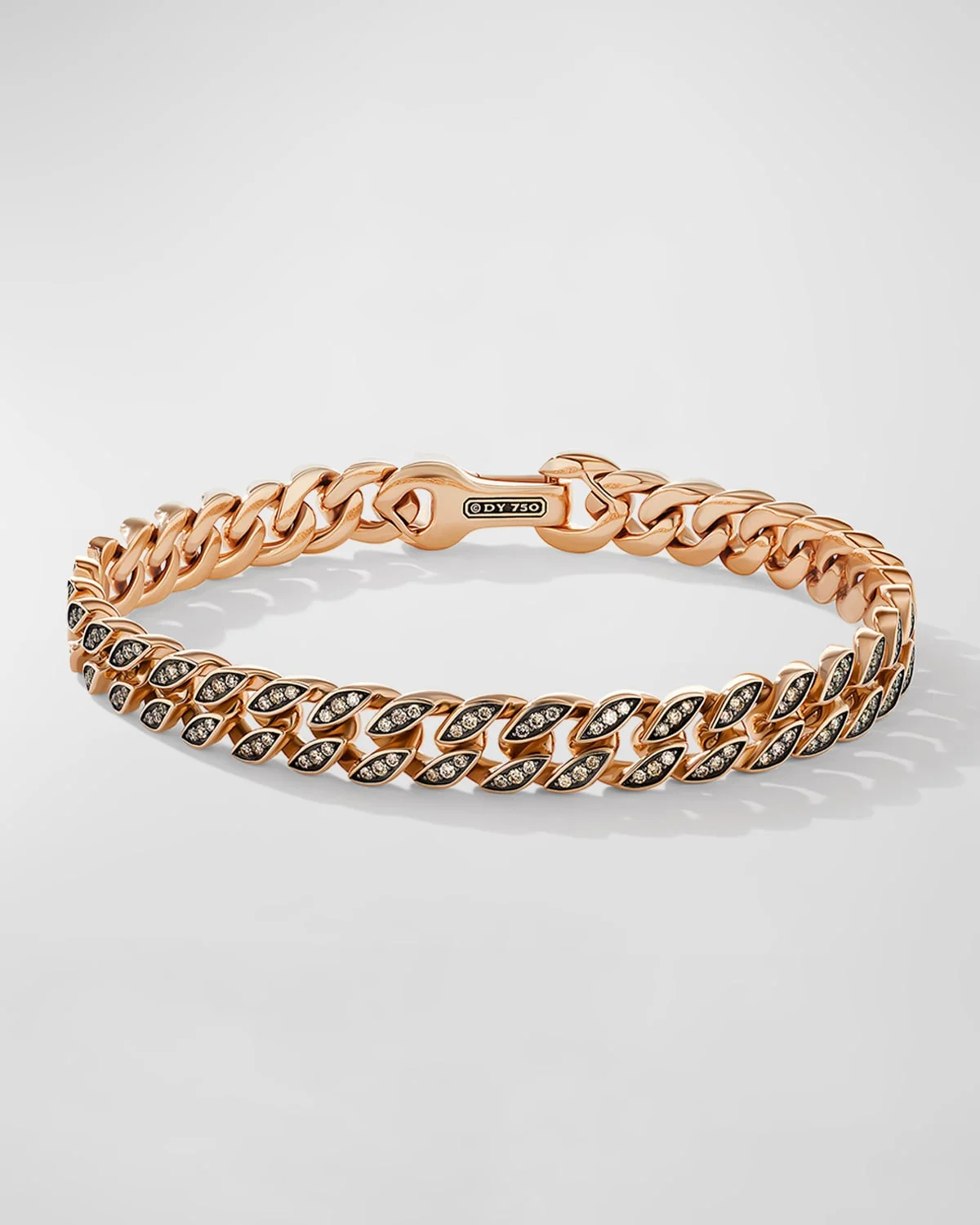 David Yurman bracelet Approx. 8mm links 18karat rose gold Pave cognac diamonds 1.56 total diamond carat weight Push clasp Imported