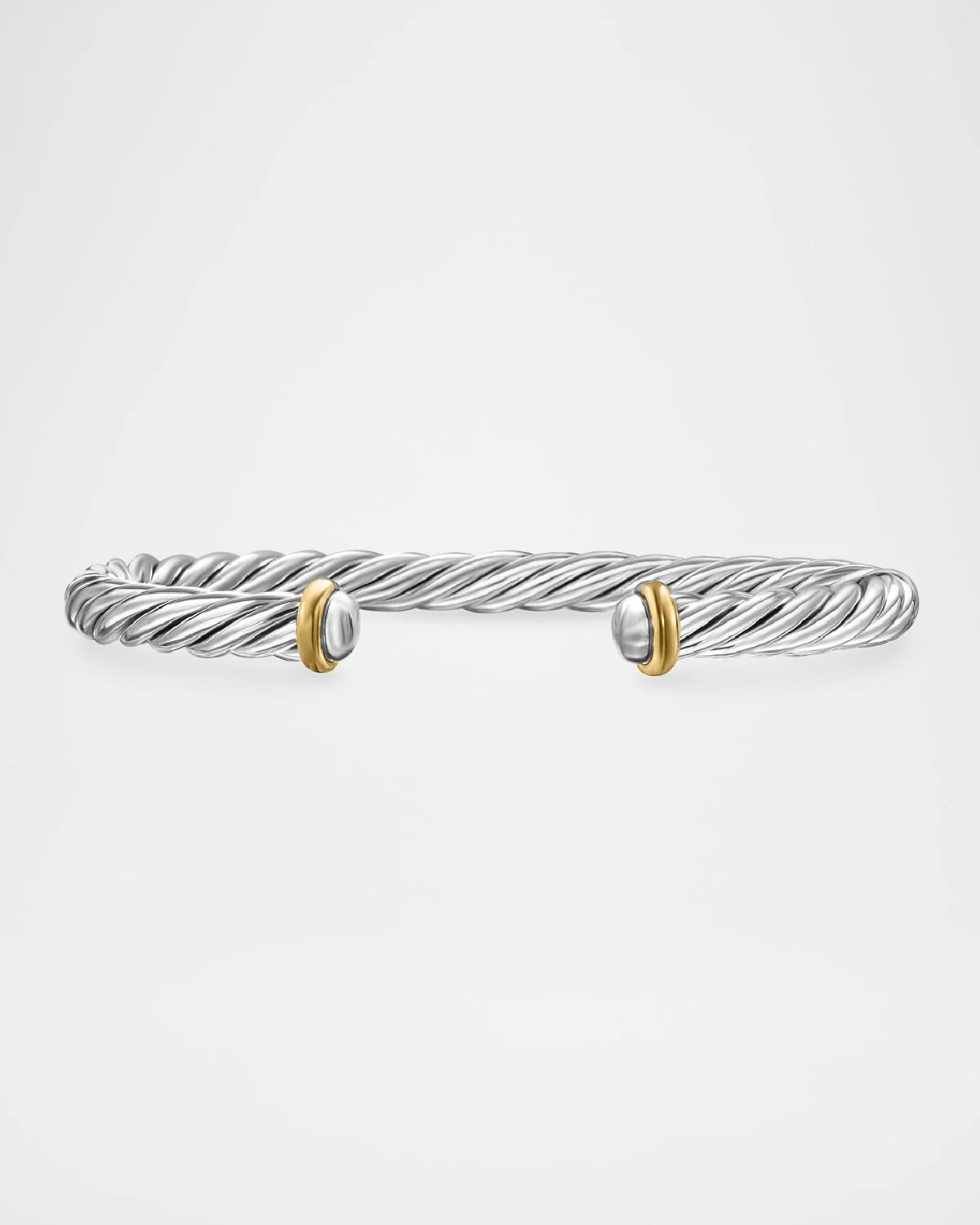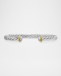 Men's Cable Flex Cuff Bracelet with Gemstone and 14K Gold in Silver, 6mm