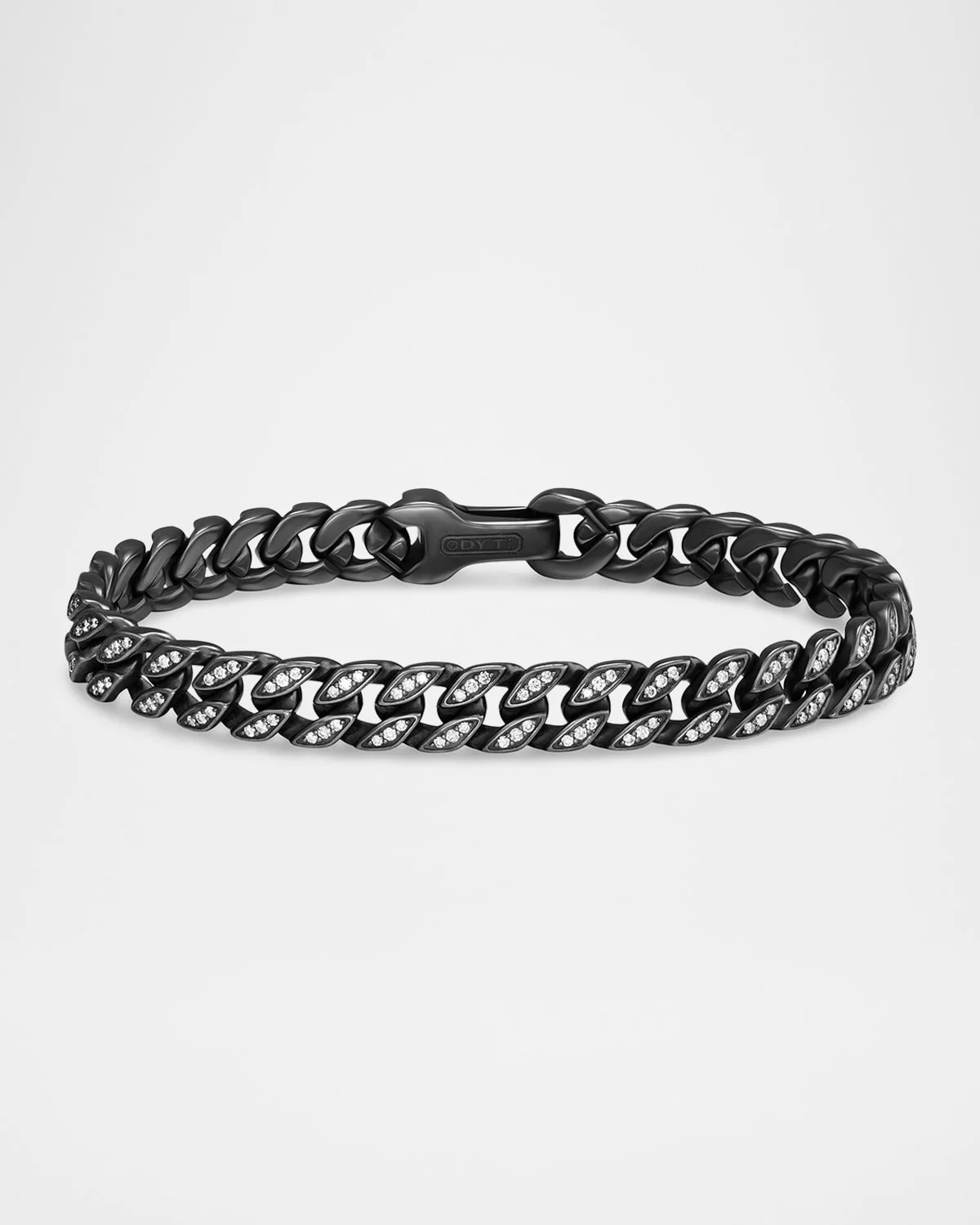 Men's Curb Chain Bracelet in Black Titanium with Diamonds, 8mm