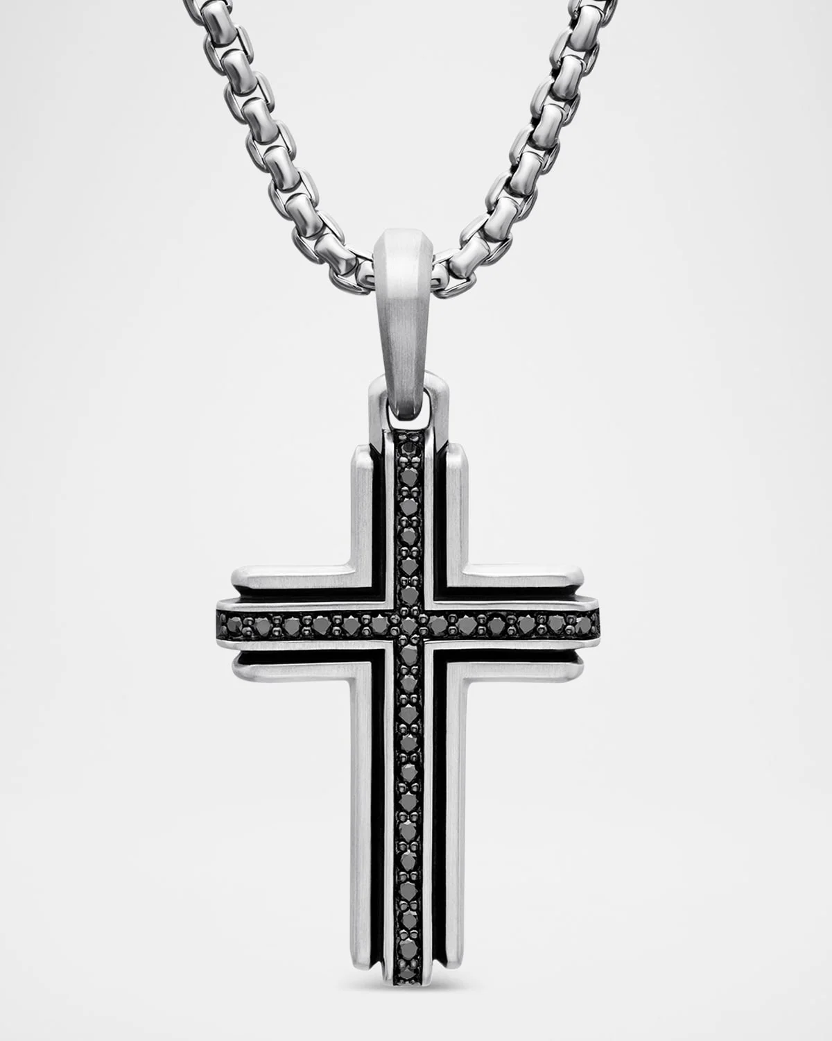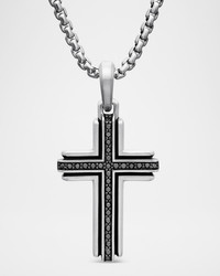 - David Yurman cross enhancer with pav%26#233; black diamonds. - 0.28 total diamond carat weight. - Sterling silver hardware. - Imported. - Please note: - pendant only; chain sold separately. - Shop David Yurman Men's Necklaces & Chains - Care Instructions: - Use the provided polishing cloth to gently wipe this item clean, then remove any remaining tarnish with mild diluted soap. Rinse with warm water, dry with a clean towel and store it in its jewelry pouch. - Please note: - Styles featuring meteorite should not be exposed to water.