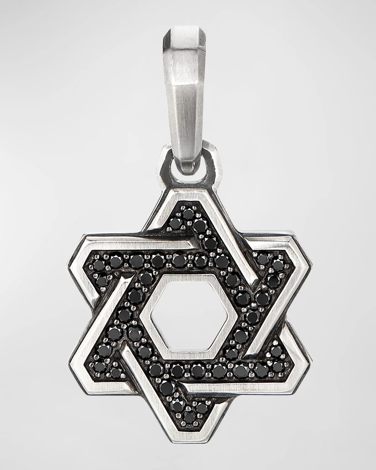 - David Yurman Star of David enhancer from the Deco collection. - Sterling silver. - Approx. 0.6"W (17mm). - Imported. - Please note: - pendant only; chain sold separately. - Shop David Yurman Men's Necklaces & Chains - Care Instructions: - Use the provided polishing cloth to gently wipe this item clean, then remove any remaining tarnish with mild diluted soap. Rinse with warm water, dry with a clean towel and store it in its jewelry pouch. - Please note: - Styles featuring meteorite should not be exposed to water.