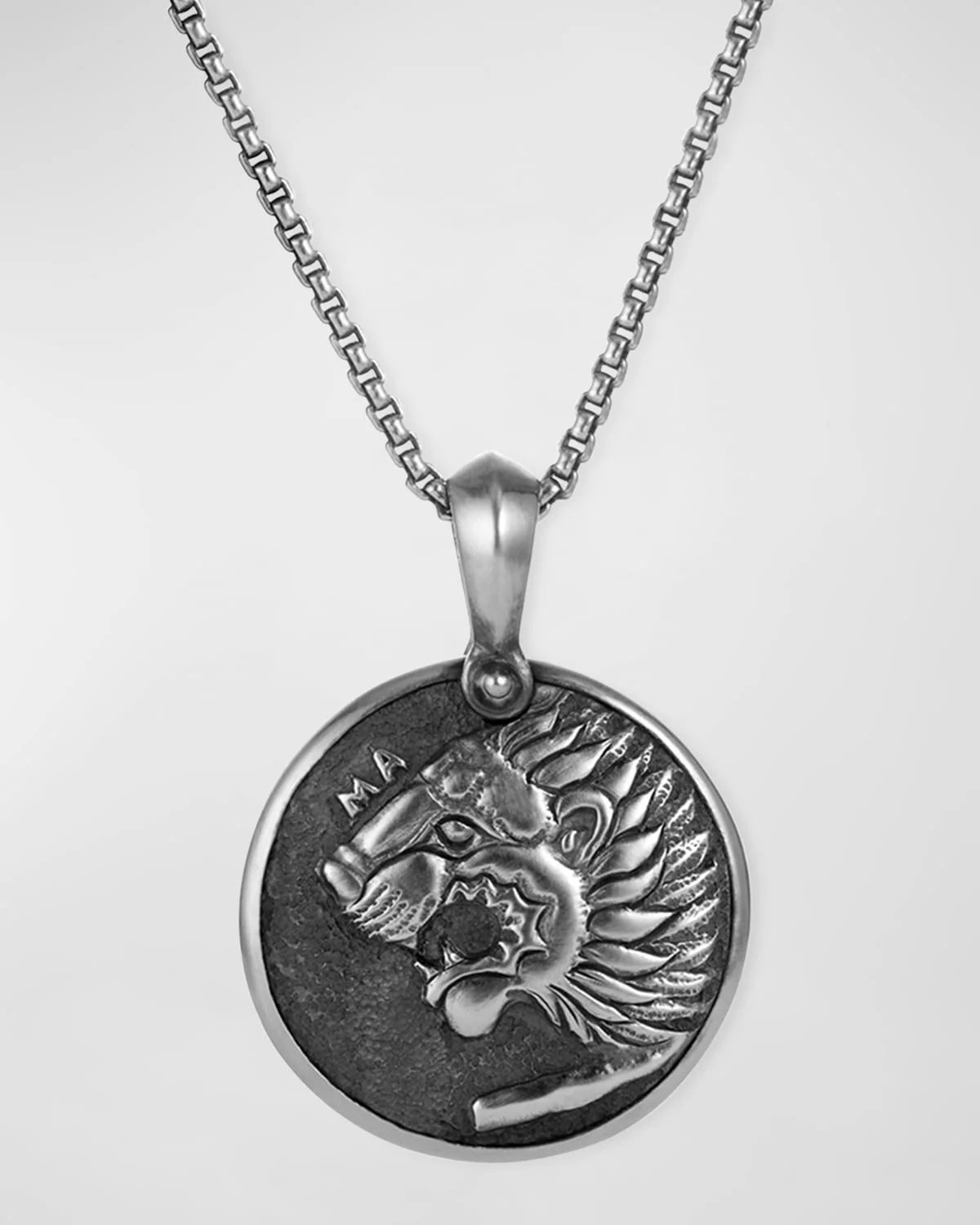 David Yurman amulet pendant in sterling silver with oxidized heraldic lion in relief. Approx. 1"L (26mm). Please note: Chain sold separately. Imported.