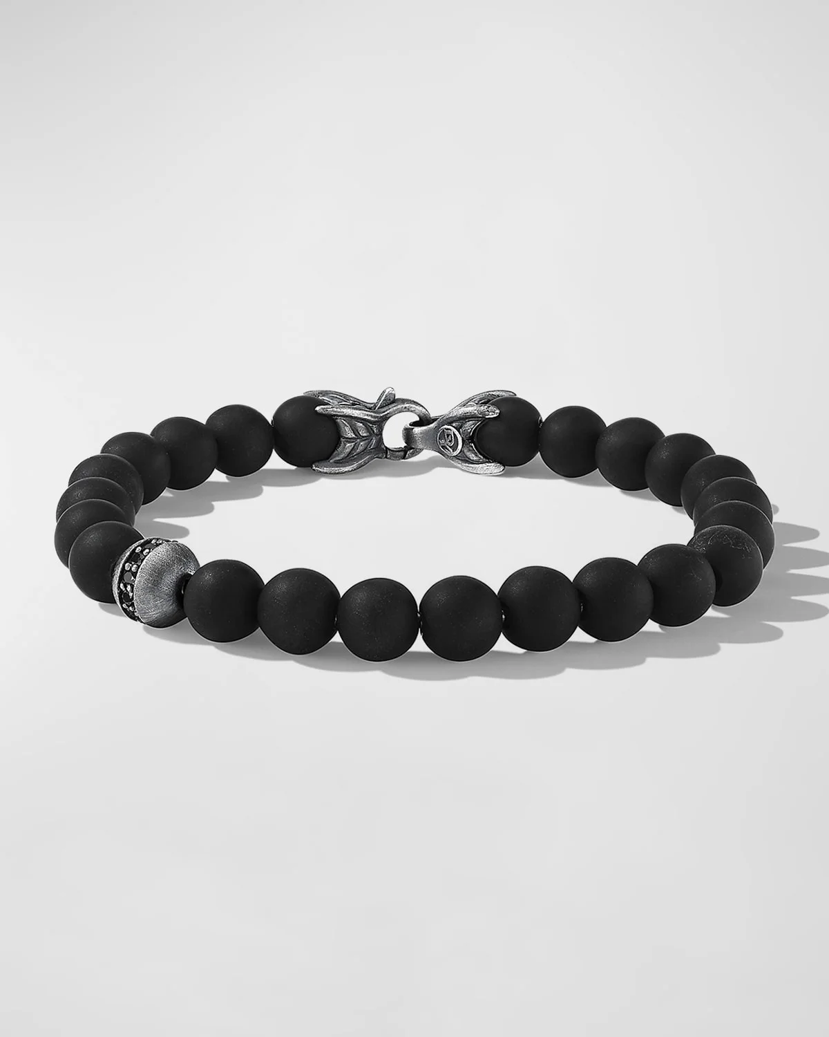 Sterling silver Black onyx beads, 8mm diameter Pav%26#233; black diamonds, 0.32 total carat weight Lobster clasp