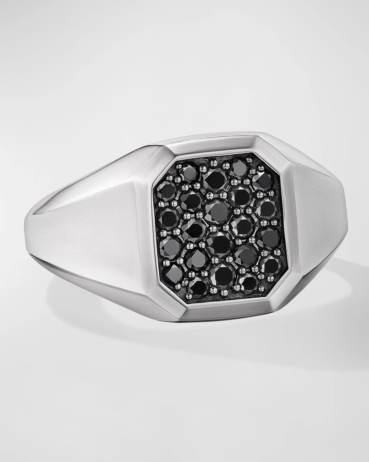 - Sterling silver - Pave-set black diamonds, 0.74 total carat weight - Ring, 14mm - Imported - Care Instructions: - Use the provided polishing cloth to gently wipe this item clean, then remove any remaining tarnish with mild diluted soap. Rinse with warm water, dry with a clean towel and store it in its jewelry pouch. - Please note: - Styles featuring meteorite should not be exposed to water.