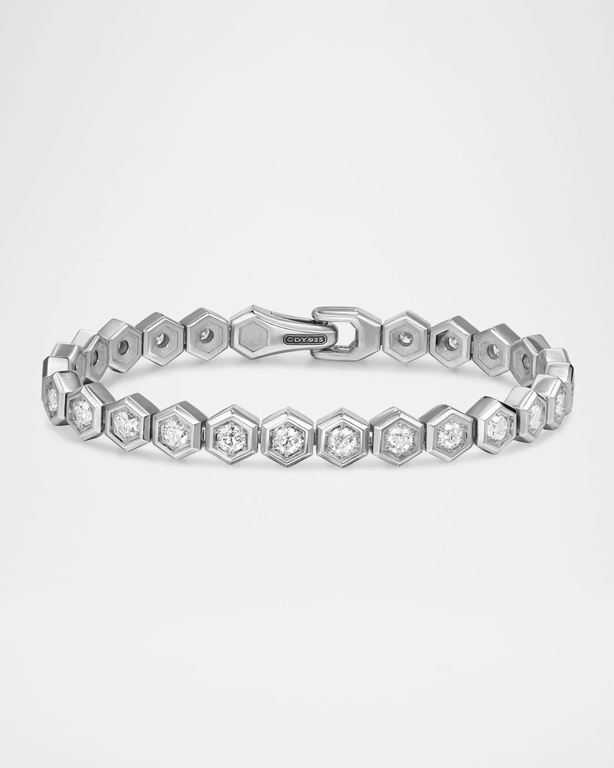 Sterling silver Bezelset diamonds, 3.99 total carat weight Bracelet, 8mm Push clasp Imported