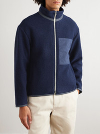 Cotton-Trimmed Brushed-Wool Jacket Navy