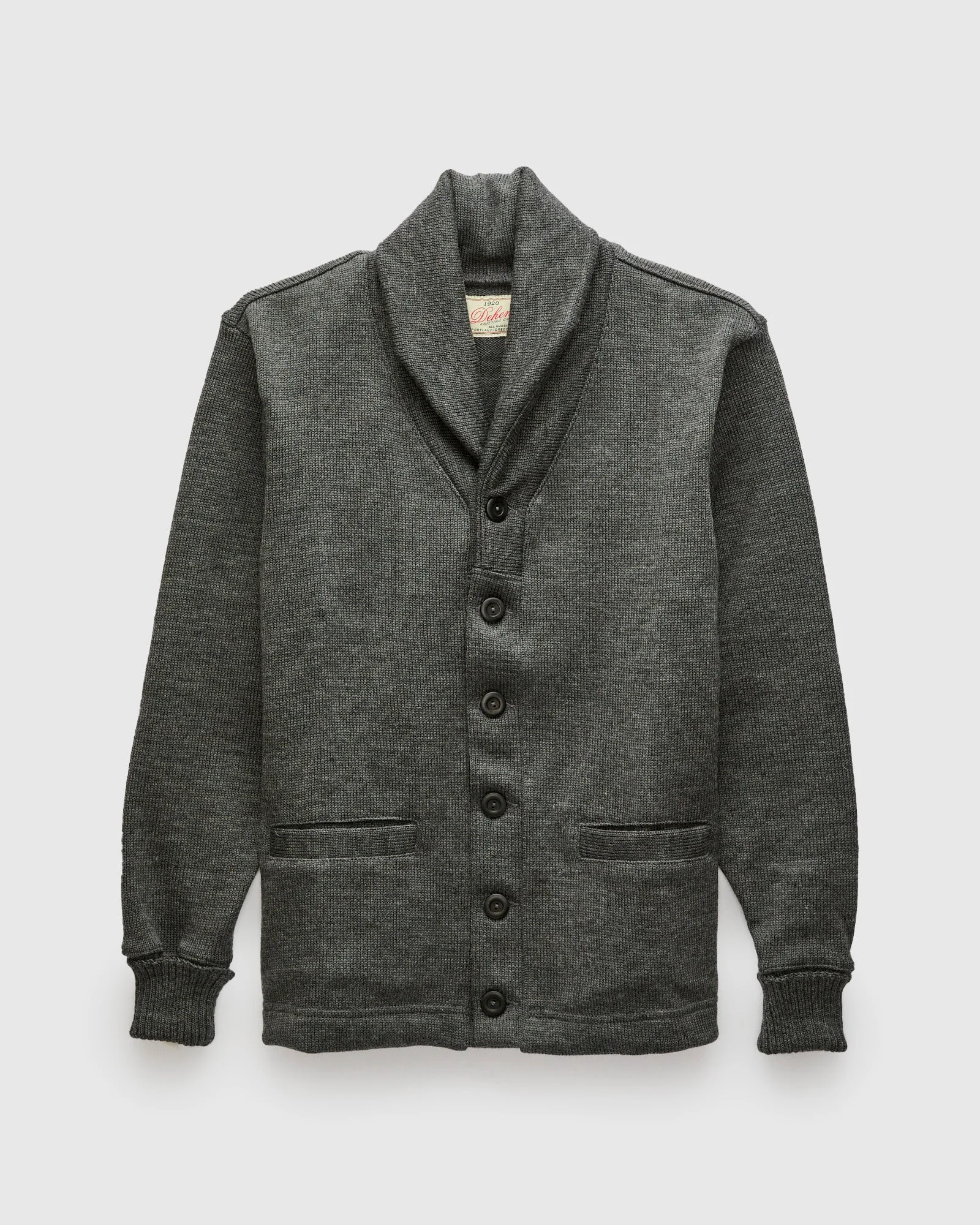 The Shawl Sweater Coat from Dehen 1920 is knit at the brand's Portland, Oregon factory using Dehen's extra heavy four-end jersey. Made using more than three pounds of 100% worsted wool yarn, this sweater is designed to withstand the test of time in both style and durability. The sweater is finished with welt pockets at the waist, interior elbow patches, fold back cuffs and custom corozo buttons. - Regular fit - Shawl collar - Extra heavy four-end jersey knit fabric - Custom corozo buttons - Interior elbow patches - Welt front pockets - Made in Portland, Oregon USA
