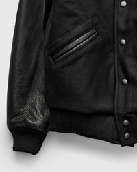 First introduced in 1951, Dehen's Varsity Jacket is a masterclass in traditional Americana. Handmade using time-honored methods at the brand’s Portland, Oregon factory, the jacket comes built using a 24oz melton wool body with cowhide leather sleeves. Fitted with a luxe quilted liner, leather accenting, worsted wool trim, and an adjustable roll collar. - Regular fit - 24oz melton wool body - Cowhide leather sleeves - Quilted lining - Roll collar - Worsted wool trim - Internal patch pocket - Snap front closure - Reinforced welt hand pockets - Made in Portland, Oregon USA