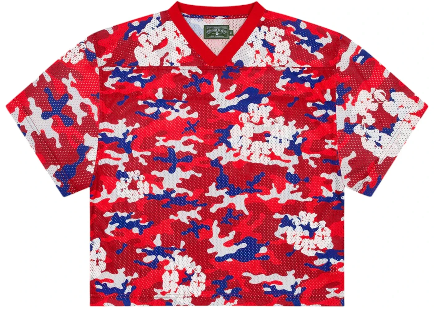 Denim Tears Camo Cotton Wreath Mesh Football Top Red