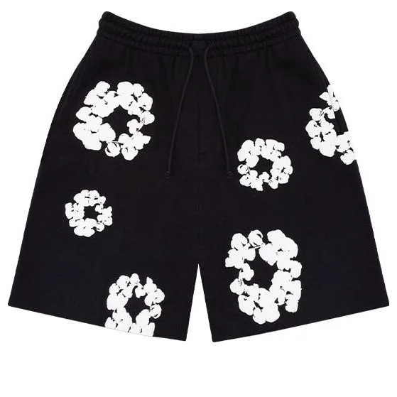 Denim Tears Cotton Wreath Logo Shorts 'Black White' 402-010-30