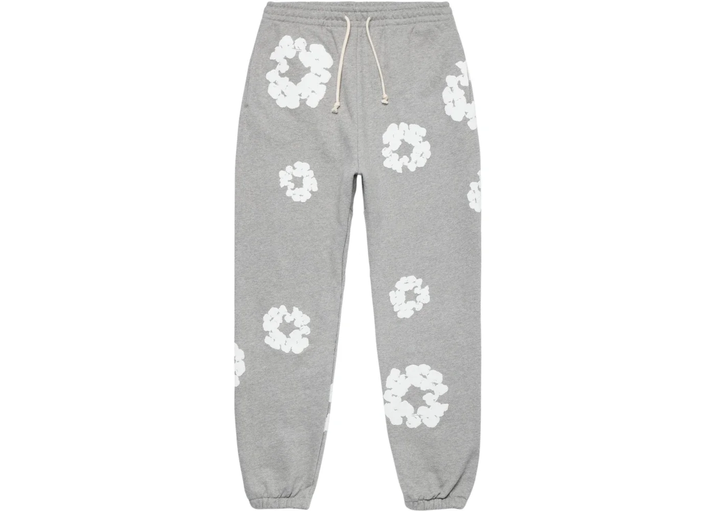 The Denim Tears The Cotton Wreath Sweatpants Gray" was released as the result of a collaborative effort between Denim Tears and Cotton Wreath. The Gray Denim Tears The Cotton Wreath Sweatpants are expertly crafted from a blend of high-quality cotton and polyester. These sweatpants boast a tapered yet relaxed fit, featuring an elasticized waistband with reinforced drawstring closure for a custom fit. They also showcase a knitted cuff design with an elastic finish, which provides a comfortable and secure fit. Additionally, the pants have two side pockets for convenience and reinforced interior stitching that ensures durability. Our experts say that the standout feature of the Denim Tears The Cotton Wreath Sweatpants Gray is the Cotton Wreath embroidery adorning the design. The wreaths are included throughout the pants in a contrasting white color on the gray base. These sweatpants were released on January 24th, 2023, at a suggested value of $190. - Season SS23 - Color Grey - Release Date 2023-01-24 - Retail Price 190 - Featured false - Uploaded By LL