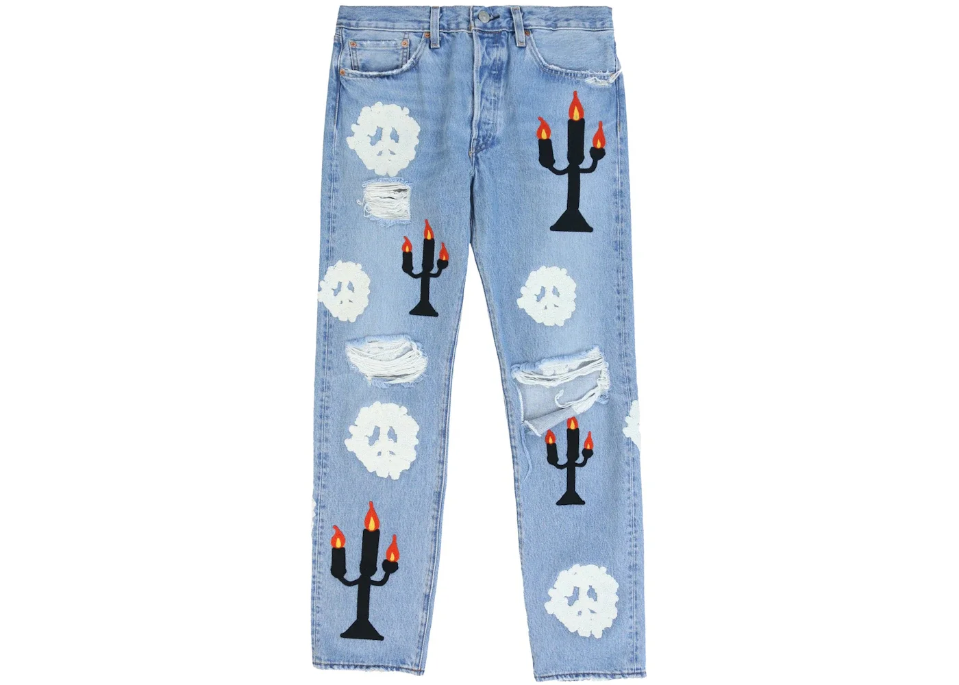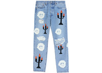 Denim Tears x Virgil Abloh "Message in a Tear" Embroidered Jeans Blue