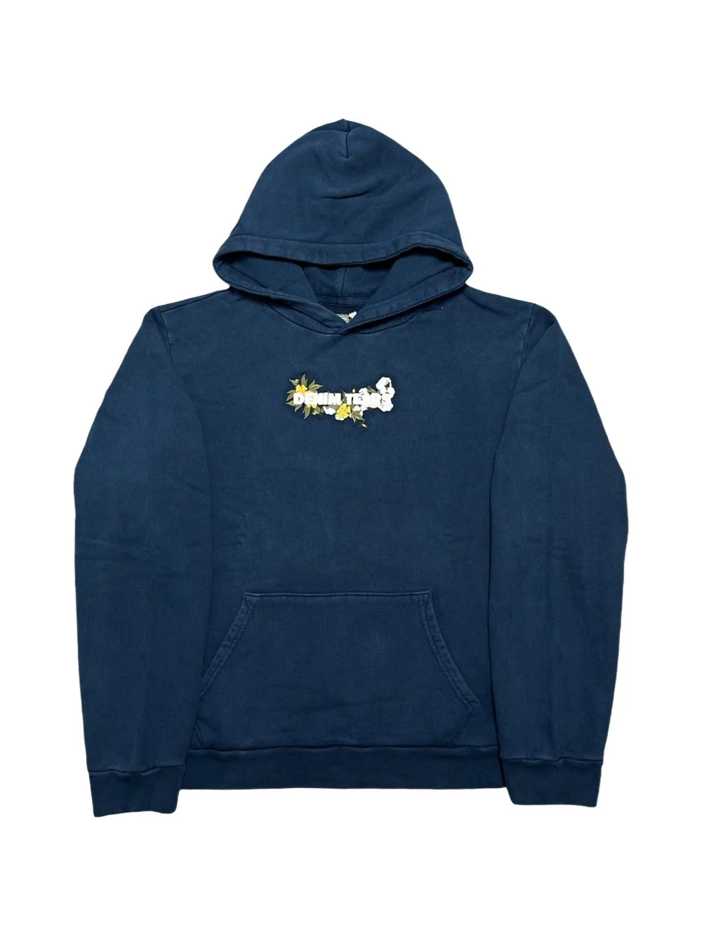 embroidered floral logo hoodie Highlights - Navy blue - Floral embroidery - Logo lettering - Hood - Pouch pocket Imported Composition Fabric 100% Washing instructions Read Manufacturer Guidelines