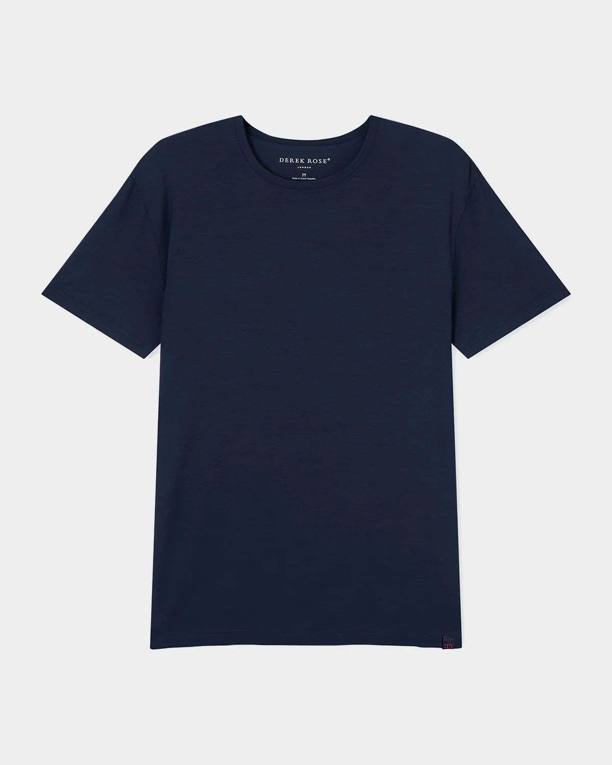 - From the Derek Rose collection. - Technical jersey T-shirt. - Extra-soft knit fabric retains shape and color after washing. - Crew neckline; short sleeves. - Straight hem; pullover style. - Micromodal/elastane; machine wash. - Imported. - Model is 6'1"/185cm.