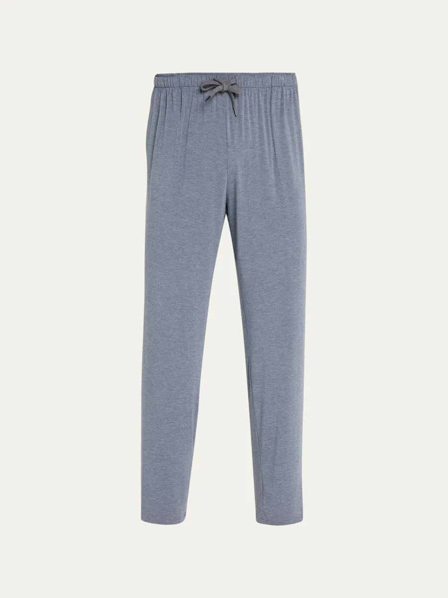 Derek Rose Basel jersey lounge pants. Side and back pockets. Relaxed legs. Elasticized drawstring waist. Micromodal rayon/elastane. Made in the Czech Republic.