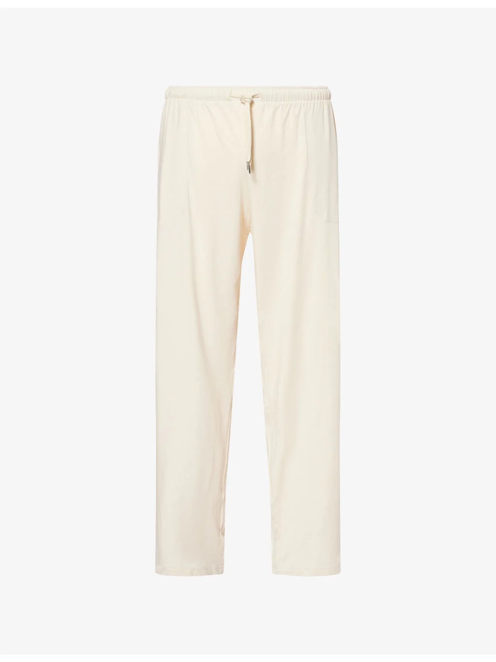PRODUCT DETAILS - Derek Rose modal-jersey trousers - 95% modal, 5% elastane - Regular fit, mid-rise, straight leg, drawstring elasticated waistband, slip pockets at front, brand embroidered tab at pocket, pocket at back, jersey texture - Machine wash cold - Model is 6ft 2in/1.88m and wears a size medium - Lightweight, stretchy Ref: R04547236