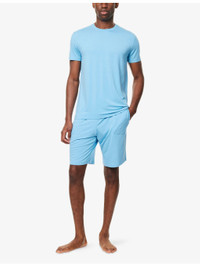 PRODUCT DETAILS - Derek Rose jersey pyjama shorts - 95% modal, 5% elastane - Crewneck, short sleeves, brand tab at hem - Machine wash at 30°C - Model is 6ft 2in/1.88m and wears a size medium - Lightweight, stretchy Ref: R04463476
