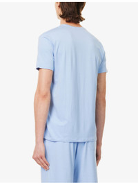 PRODUCT DETAILS - Derek Rose stretch-woven pyjama top - 95% modal, 5% elastane - Pulls on - Relaxed fit, ribbed crew neck, short sleeves, brand tab at front, straight hem - Machine wash cold - Model is 6ft 2in/1.88m and wears a size medium - Lightweight, stretchy Ref: R04316645