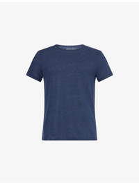 PRODUCT DETAILS - Derek Rose linen T-shirt - 100% linen - Pulls on - Regular fit, crewneck, ribbed trim at neck, short sleeves, brand patch at hem - Machine wash cold - Model is 6ft 1in/1.85m and wears a size medium - Lightweight, slight stretch Ref: R04155220