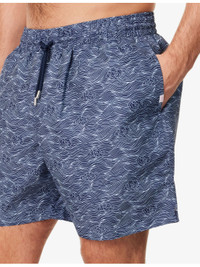 PRODUCT DETAILS - Derek Rose swim shorts - 100% polyester - Regular fit, mid-rise, drawstring elasticated waistband, slip pockets at front, embroidered tab at pocket, zip pocket at back, loop at back, internal mesh briefs, branded hardware - Machine wash cold - Model is 6ft 2in/1.88m and wears a size medium - Lightweight, non-stretch - Comes with drawstring dust bag Ref: R04551828