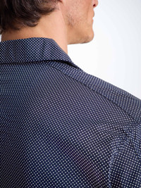 Designed for your free time with a relaxed fit, they're perfect for lounging day to night. Featuring a three pocket jacket, classic collar and adjustable two-button waistband. Elasticated sides on the trousers mean the front and back are flat for your comfort. The Plaza pyjamas are crafted from our lightweight and breathable pure cotton batiste fabric with a printed navy and white spot motif finish. They're ideal for the warmer months (or for centrally-heated homes throughout the year). T o make it truly special, we can personalis e your garment. We offer a range of options including monogramming, motifs, and secret messages. Read more about our personalised services here . The model is 6'2" / 186cm tall with waist size 30” / 76cm, chest size 39” / 99cm. He wears a Medium. PRODUCT DETAILS Material: Pure Cotton Fabric Weight: Light Fabric Type: Regular Gender: Men's Colour: Navy Pattern: Print Sleeve Length: Long Sleeve Season: CLA Country of Origin: Czech Republic Composition: 100% Cotton Fit: Relaxed Fit Item Number: 5000-PLAZ021NAV