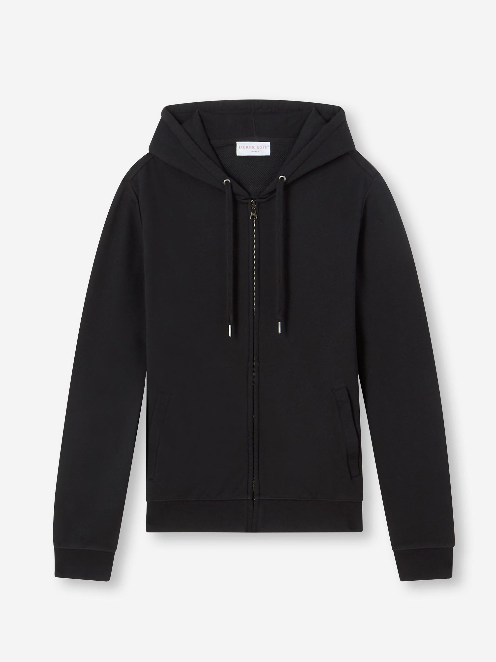 Our Quinn hoodie is stylish, yet practical. Featuring zipped front pockets with welts and with ribbed cuffs and neck trim, this hoodie is designed to hold its shape wash after wash. The Quinn fabric combines all the key qualities of our cotton and micro modal; it's durable and has great colour retention, meaning it can withstand long-lasting wear and this classic black colour won't fade. It's thermoregulating, making it perfect for warm days or cosy evenings in and it's breathable, so it's perfect for exercise. But perhaps most importantly, it's forever soft, seriously - you won't believe the quality. To make it truly special, we can personalise your garment with initials or a motif. Read more about our personalised service here. The model is 6’1” / 188cm tall with waist size 31” / 80cm, chest size 39” / 101cm. He wears a size Medium. PRODUCT DETAILS Material: Cotton/Micro Modal Fabric Weight: Medium Fabric Type: Jersey Gender: Men's Colour: Black Pattern: Plain Sleeve Length: Long Sleeve Season: 24-W Country of Origin: Portugal Composition: 68% Cotton 32% Modal Fit: Regular Fit Item Number: 3172-QUIN001BLA
