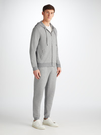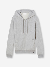 Our Quinn hoodie in silver is stylish, yet practical. Featuring zipped front pockets with welts and with ribbed cuffs and neck trim, this hoodie is designed to hold its shape wash after wash. The Quinn fabric combines all the key qualities of our cotton and micro modal; it's durable and has great colour retention, meaning it can withstand long-lasting wear and this classic silver colour won't fade. It's thermoregulating, making it perfect for warm days or cosy evenings in and it's breathable, so it's perfect for exercise. But perhaps most importantly, it's forever soft, seriously - you won't believe the quality. To make it truly special, we can personalise your garment with initials or a motif. Read more about our personalised service here. T he model is 6' 1 " / 18 6 cm tall with waist size 3 2 ” / 8 1 cm, chest size 40 ” / 100 cm. He wears a size Medium . PRODUCT DETAILS Material: Cotton/Micro Modal Fabric Weight: Medium Fabric Type: Jersey Gender: Men's Colour: Silver Pattern: Plain Sleeve Length: Long Sleeve Season: 24-W Country of Origin: Portugal Composition: 68% Cotton 32% Modal Fit: Regular Fit Item Number: 3172-QUIN001SIL