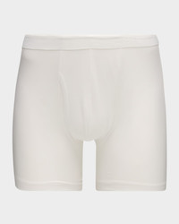 Derek Rose "Jack" boxer briefs in a lightweight, soft, stretchy jersey knit Finished with manual welt hems and minimalist hemlines for softer body contact Covered waistband for added comfort Fitted shape features a longer leg Open front Cotton/elastane Imported