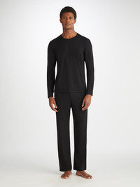 The result of countless tests and sampling our black Basel long sleeve t-shirt is the ultimate free time essential. With a flattering but comfortable fit, this classic t-shirt is perfect for sleeping, lounging or a long-haul flight. There's not much this t-shirt can't do. Our Basel fabric has to be touched to be believed. It offers long-lasting softness and doesn't pill, making it able to withstand countless days of lounging. The micro modal fabric constantly reacts to your body and helps you stay cool or warm according to your temperature. Clever. Furthermore, this special fabric is also environmentally friendly; made from sustainably forested European beech trees. The durability and quality of it also means you’ll be wearing your t-shirt for years to come! To make it truly special, we can personalise your garment with initials or a motif. Read more about our personalised services here . The model is 6'1" / 186cm tall with waist size 32inch and chest size 40inch. He wears a size Medium. PRODUCT DETAILS Material: Micro Modal Stretch Fabric Weight: Medium Fabric Type: Jersey Gender: Men's Colour: Black Pattern: Plain Sleeve Length: Long Sleeve Season: CLA Neck Shape: Crew Neck Country of Origin: Czech Republic Composition: 95% Modal 5% Elastane Fit: Regular Fit Item Number: 3083-BASE001BLA
