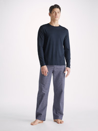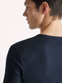 The result of countless tests and sampling our Basel long sleeve t-shirt is the ultimate free time essential. With a flattering but comfortable fit, this classic t-shirt is perfect for sleeping, lounging or a long-haul flight. There's not much this t-shirt can't do. Our Basel fabric has to be touched to be believed. It offers long-lasting softness and doesn't pill, making it able to withstand countless days of lounging. The micro modal fabric constantly reacts to your body and helps you stay cool or warm according to your temperature. Clever. Furthermore, this special fabric is also environmentally friendly; made from sustainably forested European beech trees. The durability and quality of it also means you’ll be wearing your t-shirt for years to come! To make it truly special, we can personalise your garment with initials or a motif. Read more about our personalised services here . The model is 6’0”/ 183cm tall with waist size 32.5”/ 82cm, chest size 40”/ 101.5cm. He wears a size Medium. PRODUCT DETAILS Material: Micro Modal Stretch Fabric Weight: Medium Fabric Type: Jersey Gender: Men's Colour: Navy Pattern: Plain Sleeve Length: Long Sleeve Season: CLA Neck Shape: Crew Neck Country of Origin: Czech Republic Composition: 95% Modal 5% Elastane Fit: Regular Fit Item Number: 3083-BASE001NAV