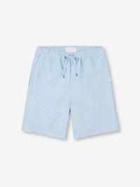 Our Sydney 2 shorts in light sky blue are cut for a regular fit for the perfect, warm weather ready style. We have developed a mid-weight, beautifully soft and breathable pure linen that will keep you cool and comfortable in even the hottest of conditions. This made in Italy fabric is finished by being piece-dyed before construction for a bright and vibrant pure blue. The Sydney 2 short features a curved back yoke for a great fit and an elasticated waistband with drawcord for comfort. The front of the short features two angled side pockets whilst the back features a single zipped pocket that sits under the curve of the back yoke. This pocket is closed with our unique pin-lock zip which locks into place when flat to ensure a secure closure. A zipped fly opening and our minimalist rose logo label on the front left pocket finish the look. Wear the Sydney from the villa to the beach or as a cool, smart-casual short for sultry evening walks and dinner by the sea. The model is 6'2" / 186cm tall with waist size 30” / 76cm, chest size 39” / 99cm. He wears a Medium. PRODUCT DETAILS Material: Pure Linen Fabric Weight: Medium Fabric Type: Regular Gender: Men's Colour: Light Blue Pattern: Plain Season: 24-W Country of Origin: Czech Republic Composition: 100% Linen Fit: Regular Fit Item Number: 9810-SYDN002BLU