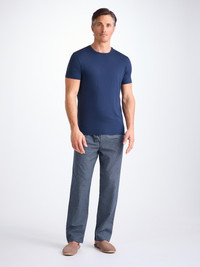 If you like to relax in style, our signature lounge trousers are for you. Designed and cut for a generous and relaxed fit, they are perfect for evening and weekend chilling. Our lounge trousers feature a combined elastic and self-fabric tied waist for a comfortable fit and two inset side pockets and a rear patch pocket to help keep your phone and other items close while you're lounging. The Braemar can be paired with our micro modal t-shirts and hoodies for head-to-toe feel-good comfort. One of our most popular fabrics, our Braemar is made from a regular, mid-weight pure cotton and brushed for unbelievable softness and warmth. Designed to keep you cosy when the temperature drops, these lounge trousers really do feel as good as they look! Trust us, you'll want to stay in them all weekend. The model is 6'1" / 185cm tall with waist size 31” / 79cm, chest size 38” / 96cm. He wears a size Medium. PRODUCT DETAILS Material: Pure Cotton Fabric Weight: Medium Fabric Type: Flannel Gender: Men's Colour: Navy Pattern: Check Season: CLA Country of Origin: Czech Republic Composition: 100% Cotton Fit: Regular Fit Item Number: 3564-BRAE032NAV